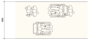 また、杖をついた歩行者とすれ違ったり、介助をして歩行し、すれ違うなどを考慮すると通路幅は1800mmが必要です。